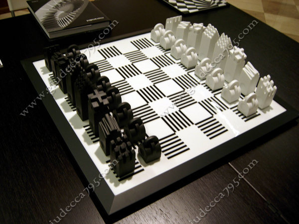 Marcello Morandini (1940) after his beginnings as graphic designer with Umberto Eco for Bompiani publishing, devoted himself to design and artistic research. In 1965 he participated in the San Paulo Biennal (introduced by Dorfles), and in 1968 he exhibited at the Biennale di Venezia in a personal hall. Internationally appreciated, he is invited to work on projecting buildings, sculptures and important collections. His research is about the visual representation of movement, seen as a subject independent from representational themes, according to the Futurist vision. Studying the different kinds of movement (torsion, tension, expansion, overlapping) he produces graphic and plastic works, in two or three dimensions as well, always in white or black and white. Whether it is graphic, or sculpture, or architecture and design, Morandini's style is coherent and unique, giving even to everyday's life needs an aesthetic and artistic dimension. The tribute by Giudecca 795 begins with the chess set - the last available of a limited series - and continues with sculptures and multiples in plexiglass.