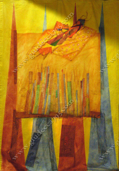 Pittura con colori naturali su vela (tela di cotonina) / Painted sail (natural paints, cotton)